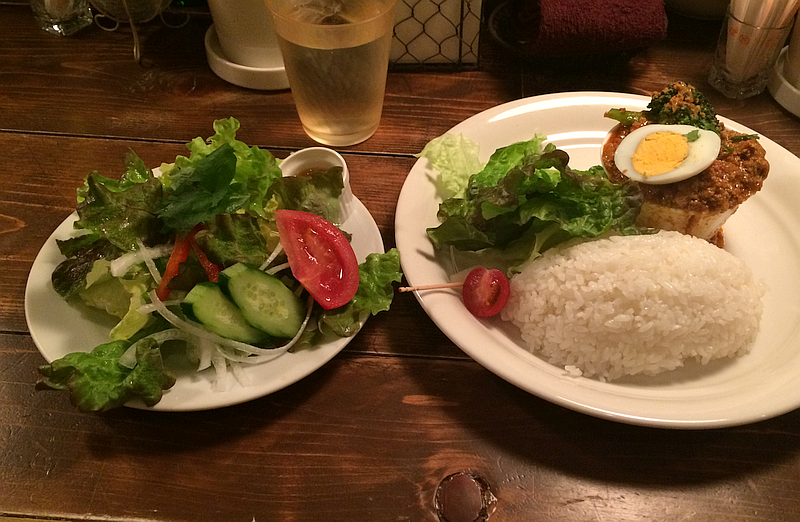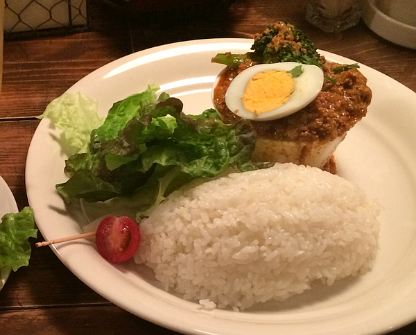 小さい器にキーマカレーが山盛りで、なかなか豪快な感じです。