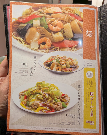 「麺」のメニューで「五目あんかけ焼きそば」の写真が最も大きくてオススメなのでしょう。