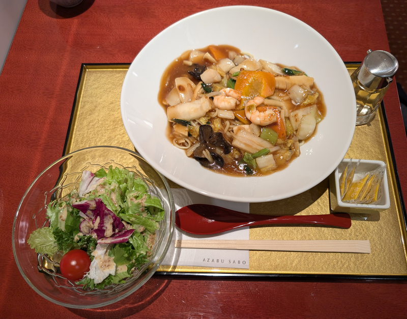 その「五目あんかけ焼きそば」がオープン記念で 3月27日まで、通常 1,500円が 1,100円となっているので迷わずオーダーしました。
