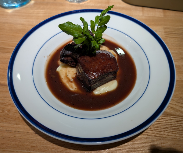 ホロッとほどけるような柔らかいお肉にソースとマッシュポテトを絡めて、おいしくいただきました。