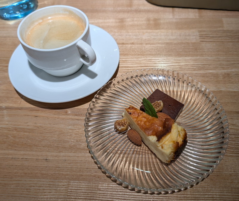 デザートは「バスクチーズケーキ」と「テリーヌショコラ」。どちらも濃厚でおいしい。食後にはこれくらいの量で充分。