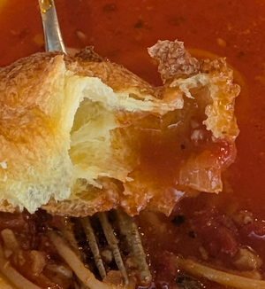結構な大きさで、食べ放題でも 2個で十分?と思ってちぎると中は空洞で、これなら 3個はいけるか?