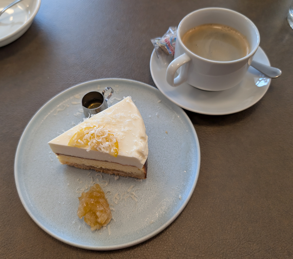 最後に「レアチーズケーキ」とセットドリンクのホットコーヒー。