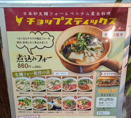 吉祥寺にもベトナム料理のお店、特にフォー専門店は増えましたが、入れ替わりも多い中で、この「チョップスティックス」には老舗感さえあります。