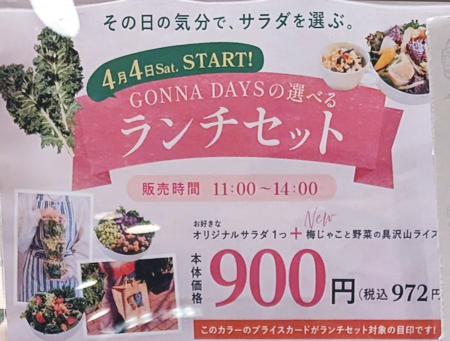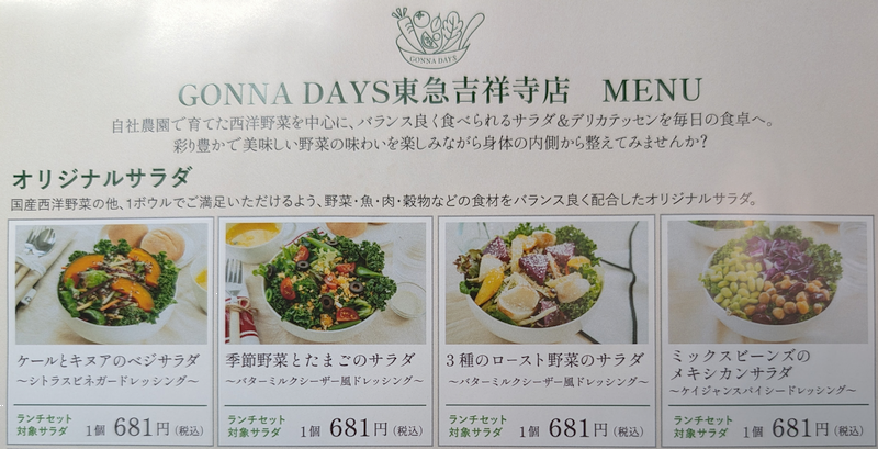 サラダ&デリカテッセンのお店「GONNA DAYS 東急吉祥寺店」で「ランチセット」が始まったので利用してみました。