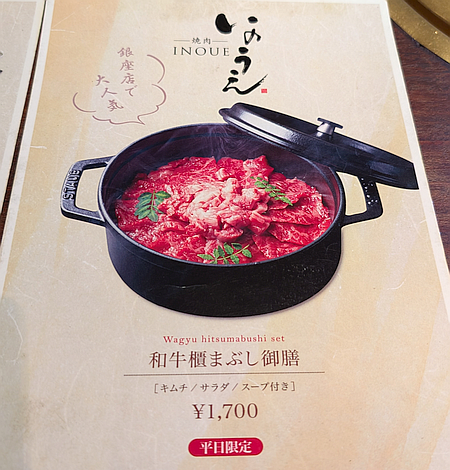 「吉祥寺ファンページ」で紹介され、美味しそうだった「和牛櫃まぶし御膳」に魅かれて「焼肉いのうえ」を再訪。