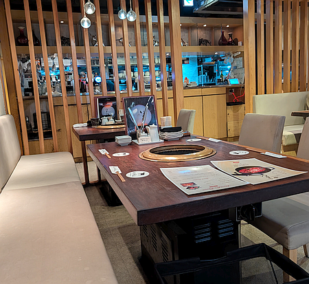店内は無煙ロースターのテーブル席が充分な数、用意されています。