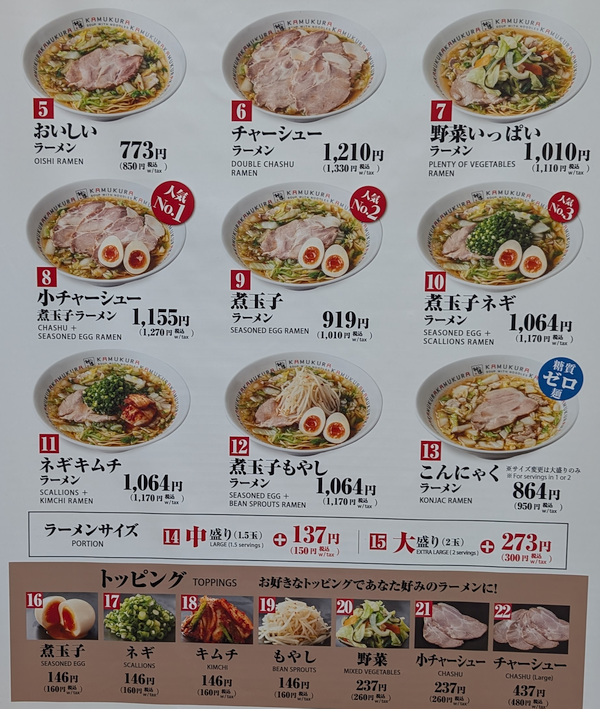 でも「おいしいラーメン 773円」+「野菜トッピング 237円」と「野菜いっぱいラーメン 1,010円」は同じ値段なので、「半炒飯・餃子セット 1,410円」に「野菜トッピング 237円」でも同じのようです。たぶん。