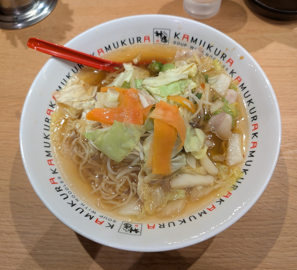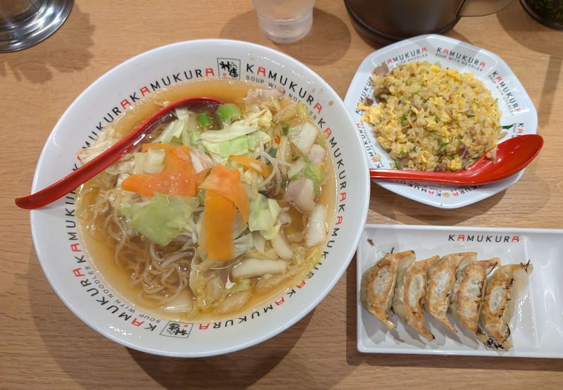 「どうとんぼり神座(かむくら)」でおいしい「野菜いっぱいラーメン」に「半炒飯・餃子セット」を付けてお腹いっぱい