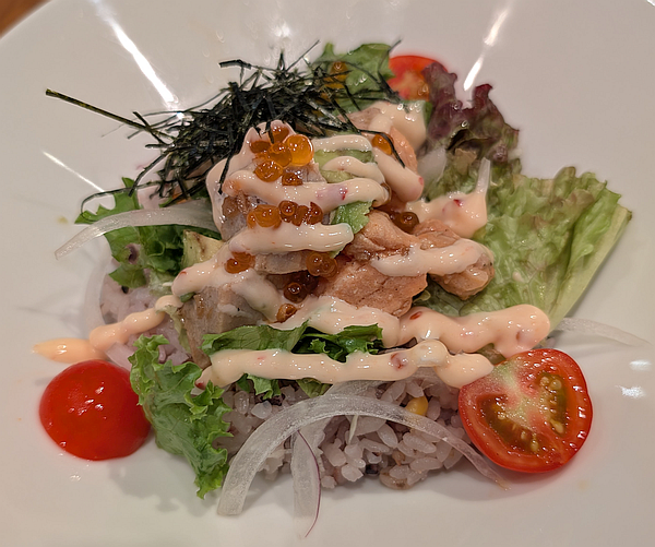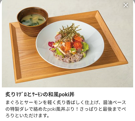 そういえば食べたことなかったよね、ということで「炙りマグロとサーモンの和風poki丼」をチョイス。