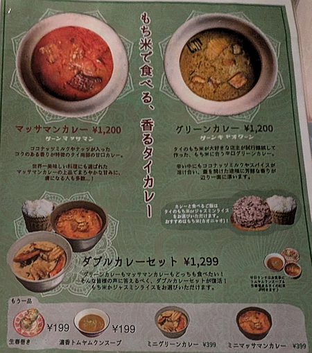 メニューでグリーンカレーを探すと、そうそう、マッサマンカレーと「ダブルカレーセット」がありましたね。