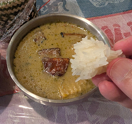 「マッサマンカレー」にはもち米を漬け、スプーンでいただきました。底にはナッツもあって、こちらもコク旨。
