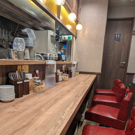 店内は手前にテーブル席があり、奥にカウンター席が並びます。