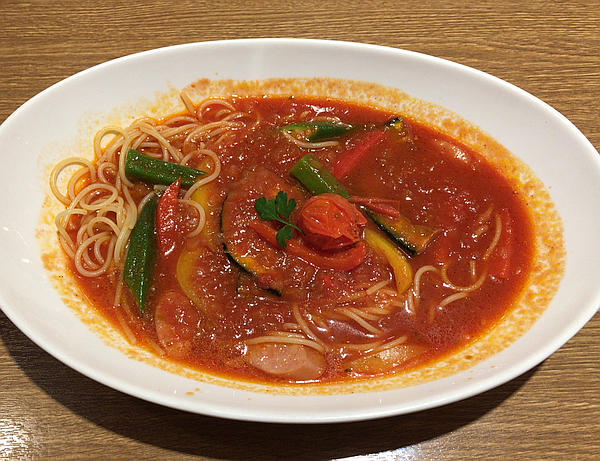 でも、今回は「季節のおすすめ」で「1日分の緑黄色野菜を食べる辛味スープスパゲティ」にグッときました。