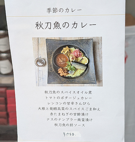 「季節のカレー」の張り紙に誘われて「秋刀魚のカレー」をオーダー。