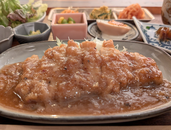 この日は「海鮮かき揚げ チリマヨソース」をオーダー。豊富な小鉢は変わらぬ充実感。