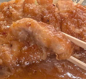 ボリューム抜群のチキンにたっぷりソースが付いて食べ応えあり。