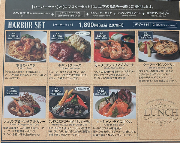 年末になると、なぜか行きたくなる「レッドロブスター」でランチ。久しぶりに「ハーバーセット」を頼んでみましたが、税抜価格で 1,890円と昨年から 200円アップしていました。