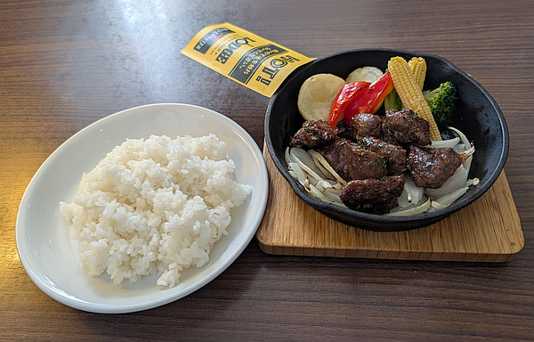 「ハンバーグ」と悩みましたが「カットステーキ」に付く「ガーリックライス」にも魅かれてしまいました。