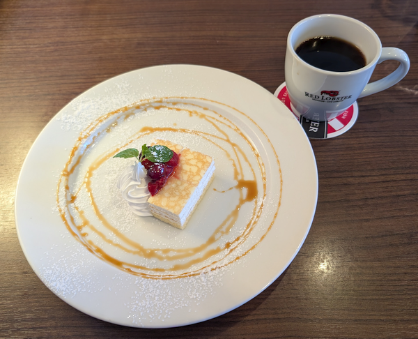 そして食後は誕生日の特典ということで「ミニデザート」が付いてきました。もちろんフリーリフィルドリンク付きセットなのでホットコーヒーをお替りして完璧。