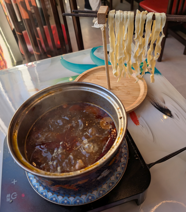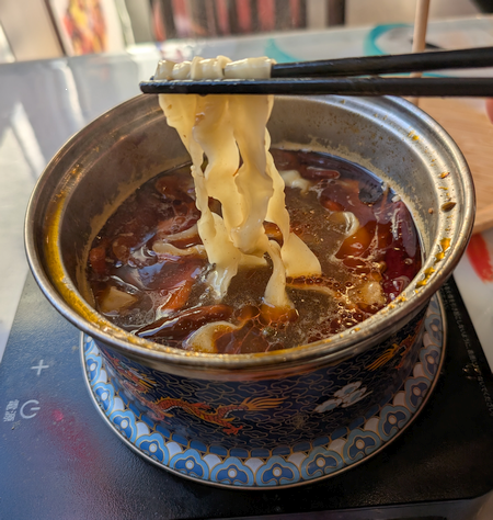 半分くらい食べたら、額から汗が流れてきました。そして後半は締めの「刀削麺」。