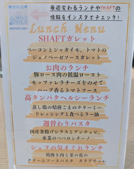「中道通り」を歩いていると「SHAFT」の看板が目に入ったのでランチしてきました。
