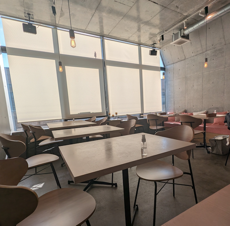 階段を登りきると入口があり、店内は天井も高く、ゆったりできます。