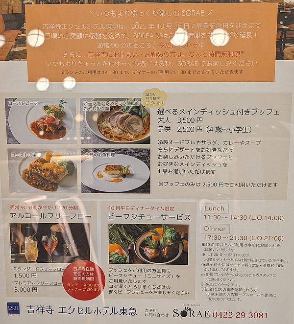 「吉祥寺エクセルホテル東急」2階のラウンジ&ダイニング「SORAE(ソラエ)」で「平日ブッフェ」がリニューアルというので「吉祥寺ランチ」してきました。