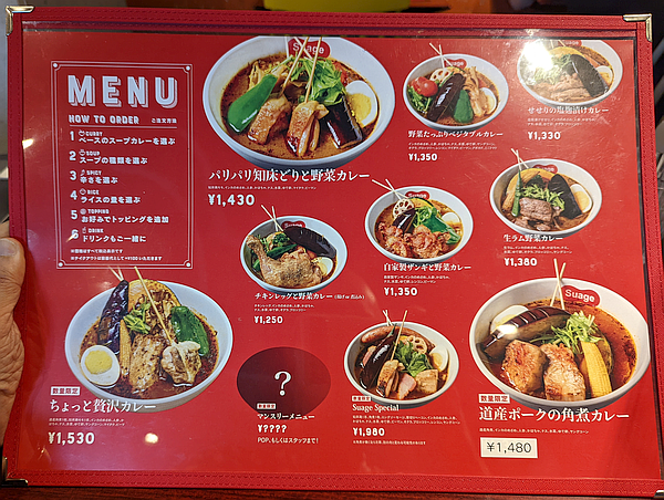 ランチメニューはなく、まずは「ベース」となるスープカレーを選ぶようです。