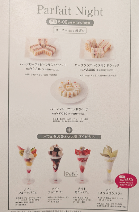 2026/2/13「ハーフ フルーツサンドイッチ」でパフェナイト