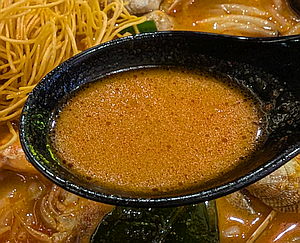 白濁したスープはなるほど旨辛。飲んですぐは、それほど辛さは感じませんが、あとからじわっと胡椒のようなスパイシーな辛さが口の中で広がります。