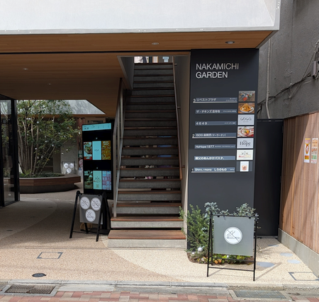 お店は「NAKAMICHI GARDEN」の向かって右にある階段を 2階に上がると正面奥にあります。2階の向かい側は「iSDG 麻辣燙」です。