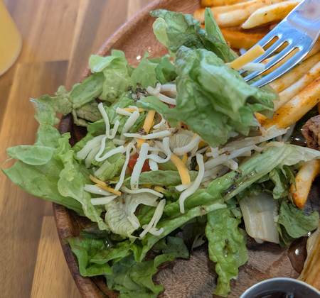6分ほどして「サラダプレート」が到着。思ったよりポテトもサラダも多い感じ。