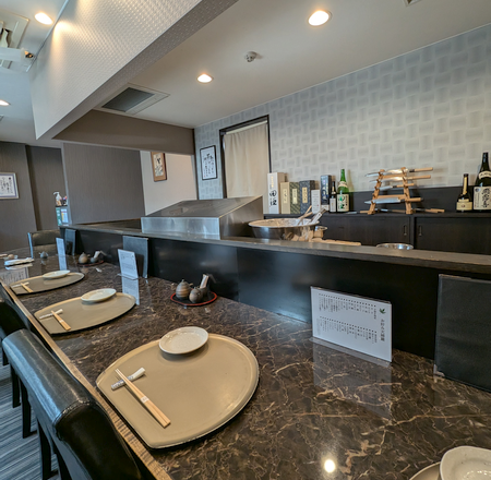 店内は手前にカウンター席、そして奥には、より広い空間や座敷もありそうです。