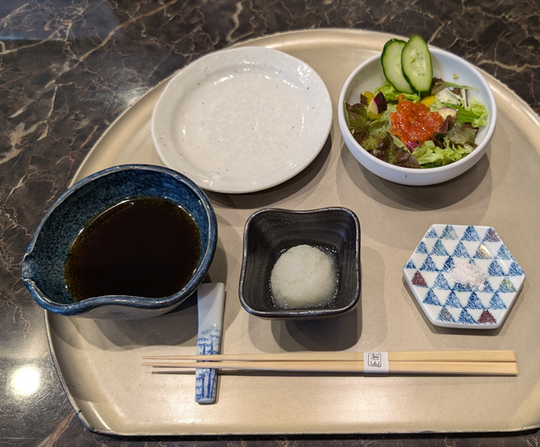 「天ぷら わかやま」吉祥寺店の平日限定「ランチセット」で天ぷら盛り合せと海老かき揚げの天茶を堪能
