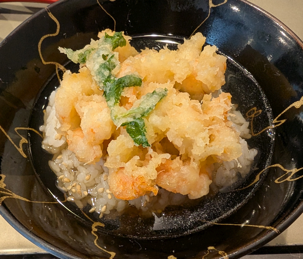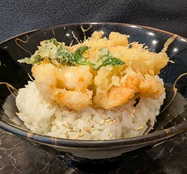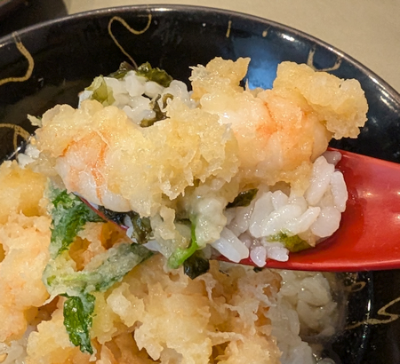 そうしているうちに、ご飯に「海老かき揚げ」が乗って登場。