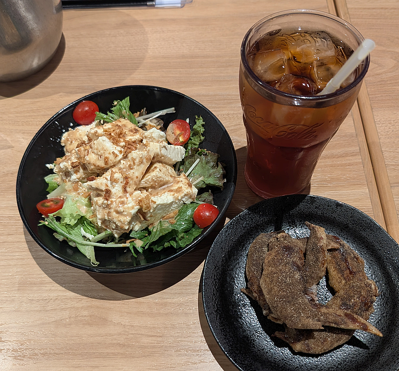 でも、せっかくなので「烏龍茶(363円)」と「豆腐サラダ(605円)」を追加。