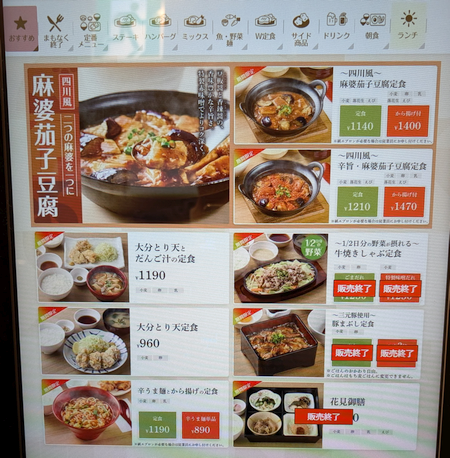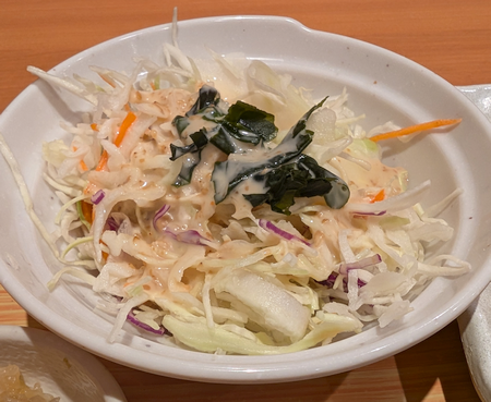 アプリクーポンに「野菜サラダ 50円引き」があり、適用方法が分からず苦戦しましたが、券売機の初期画面で選択して使用する必要がありました。