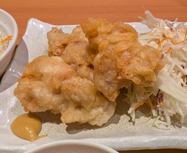 「とり天」おいしかったです。「ポン酢」「からし」「柚子胡椒」と味変もできて、最後まで楽しめました。