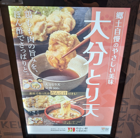 階段の横に「大分とり天」のポスターが貼ってあり、無性に食べたくなりました。